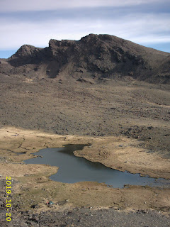 chorrera de desagüe de la laguna. Lo más cómodo es subir la